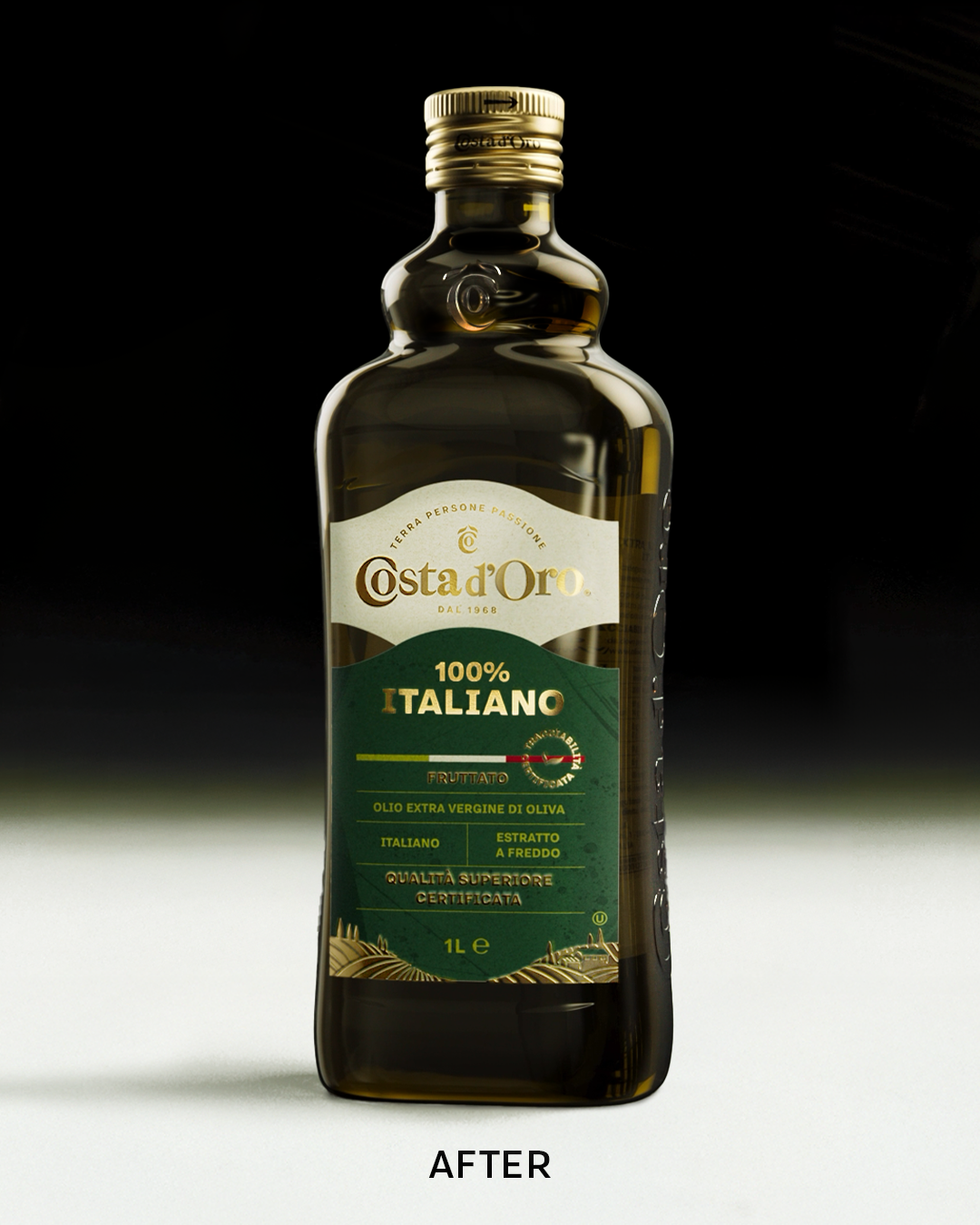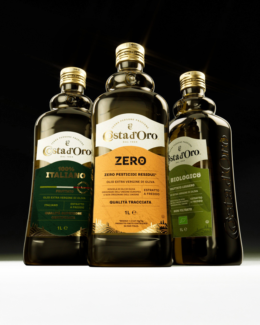 Agency assignement: Brand restyling. Give Costa d’Oro more standing, premiumness, and a clearer navigation across its range. We rethought the entire structure – from the bottle’s shape to the label’s architecture – to create a coherent, elevated brand experience. The result is a new identity that boosts shelf presence with the confidence of a premium spirit.