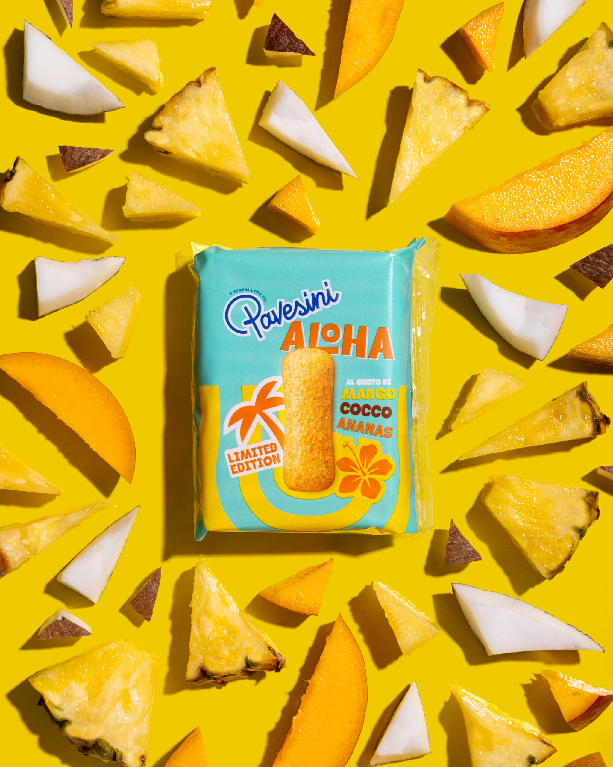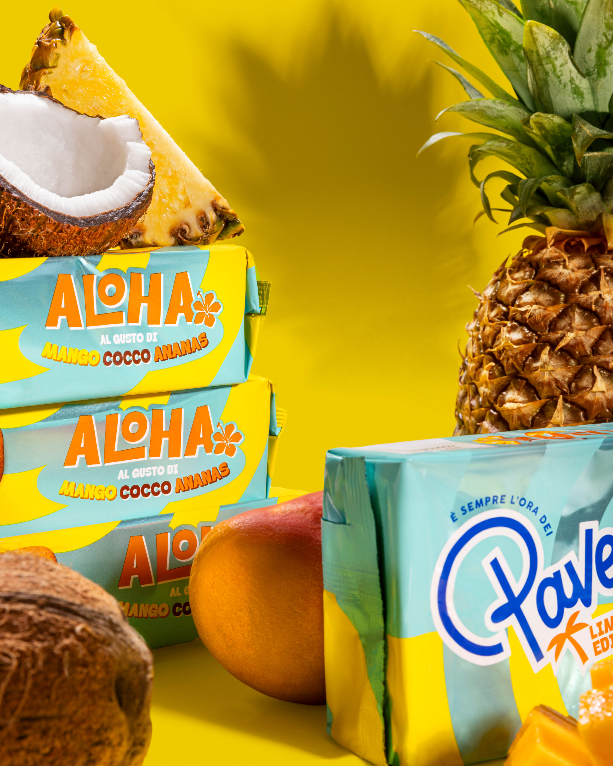 Agency Assignment: Bold, bright, and irresistibly sunny: this is the new visual identity we imagined to refresh the Pavesini universe, rejuvenate the brand, and elevate its iconic yellow. Created for a limited edition inspired by summery, tropical flavors, Aloha whisks consumers away to a carefree paradise, and made us even happier to work on such cheerful packs with summer just around the corner.